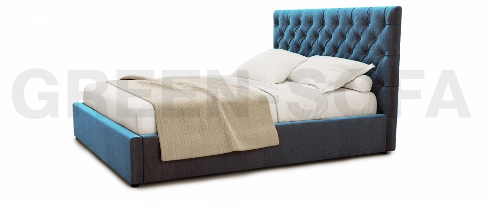 Двуспальная кровать с подъемным газовым механизмом, каркас кровати выполнен из массива дерева, сосна.